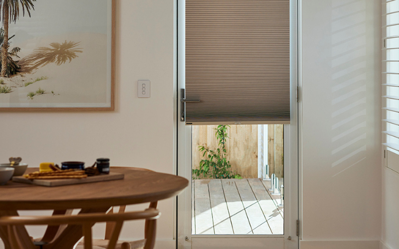 Make a statement in your kitchen or dining room with light and bright interior blinds.