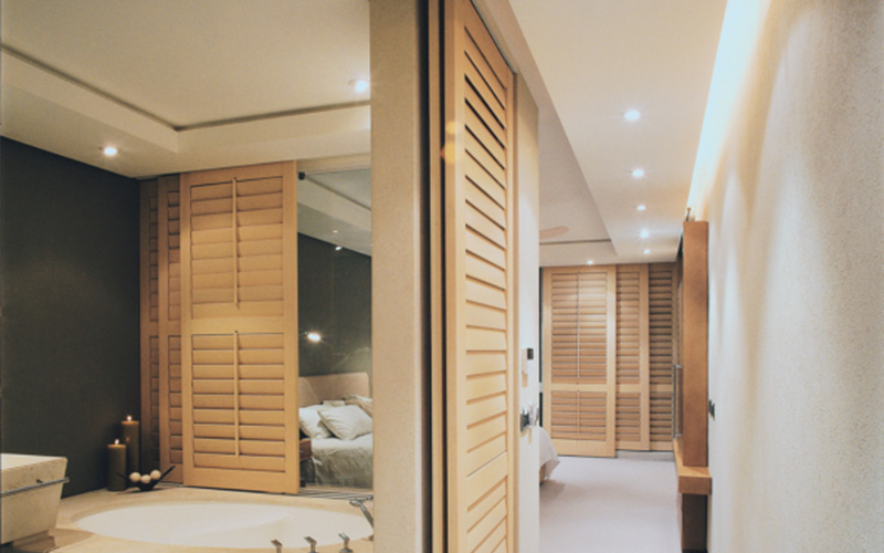 Sliding interior shutters aren’t just for windows, they also make elegant room dividers. Perfect for open-plan living, they’re ideal for separating spaces like kitchen to dining areas, studies, or lounge zones.