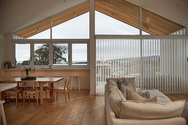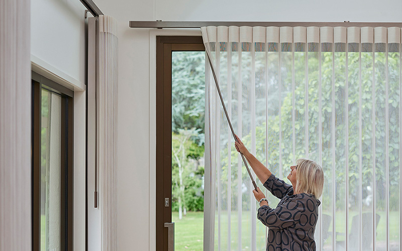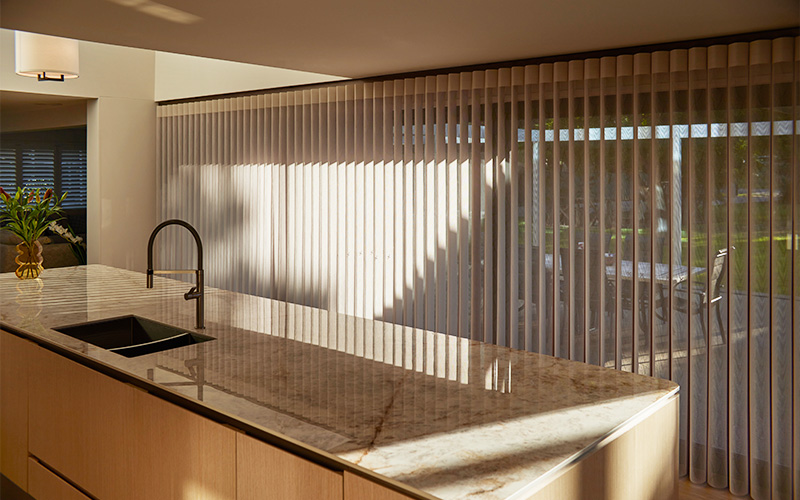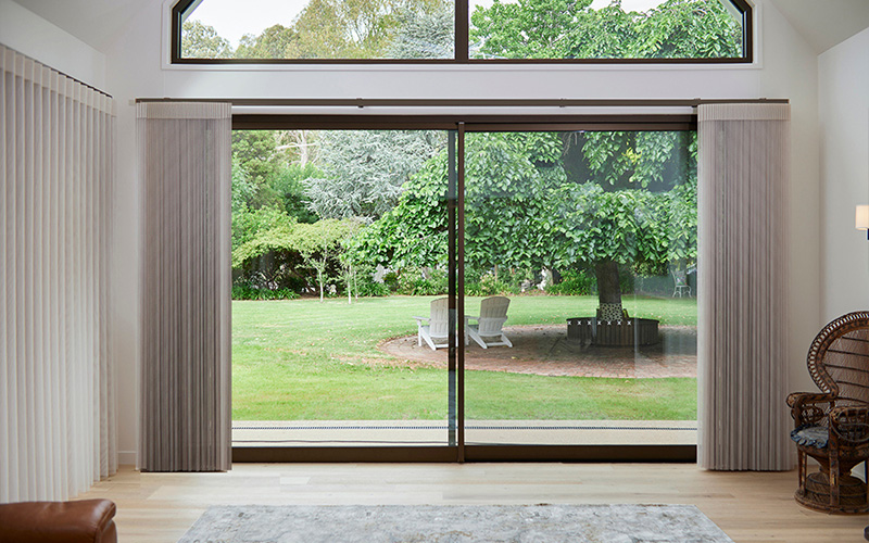 Switch between sheer and solid fabric with a simple twist of the wand or the press of a button (for motorised), providing easy access and control over light and privacy. Walk through any part of the shade, whether it’s open or closed, seamlessly connecting indoor and outdoor spaces.